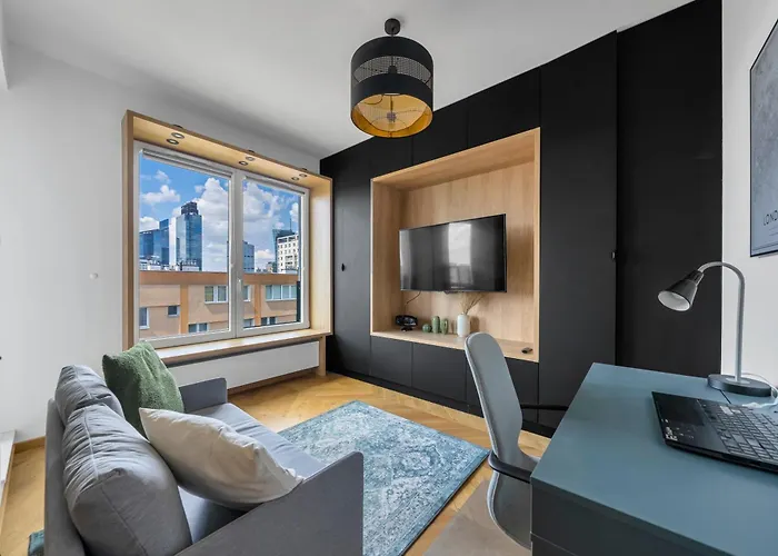 Located only a 5-minute walk from the Fragment of the Ghetto Wall and ORCO Tower, the 30 m² Warsaw Wola Studio - Balcony&Workspace - By Rentujemy features views of the city. Guests can make use of Wi-Fi for both business and leisure purposes.